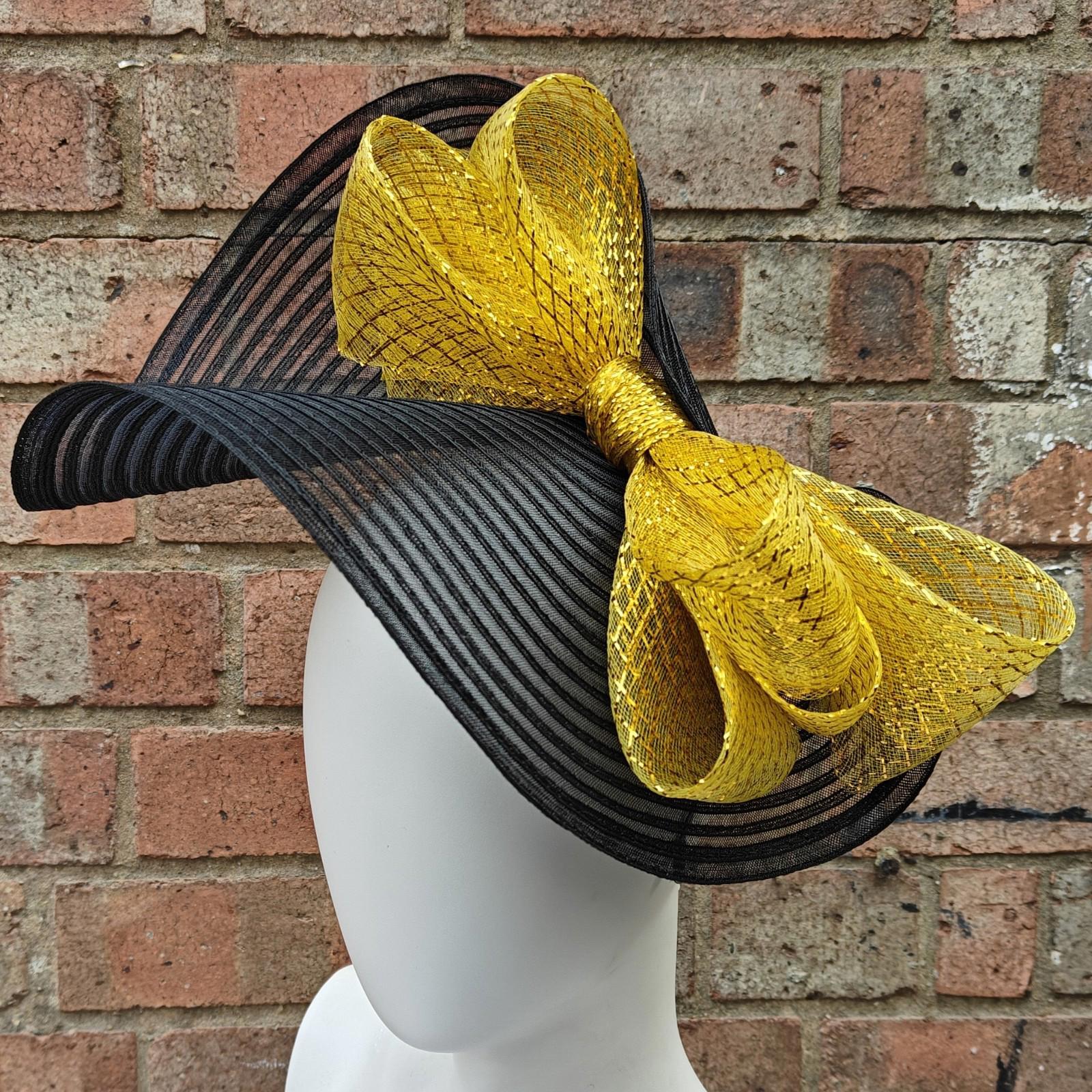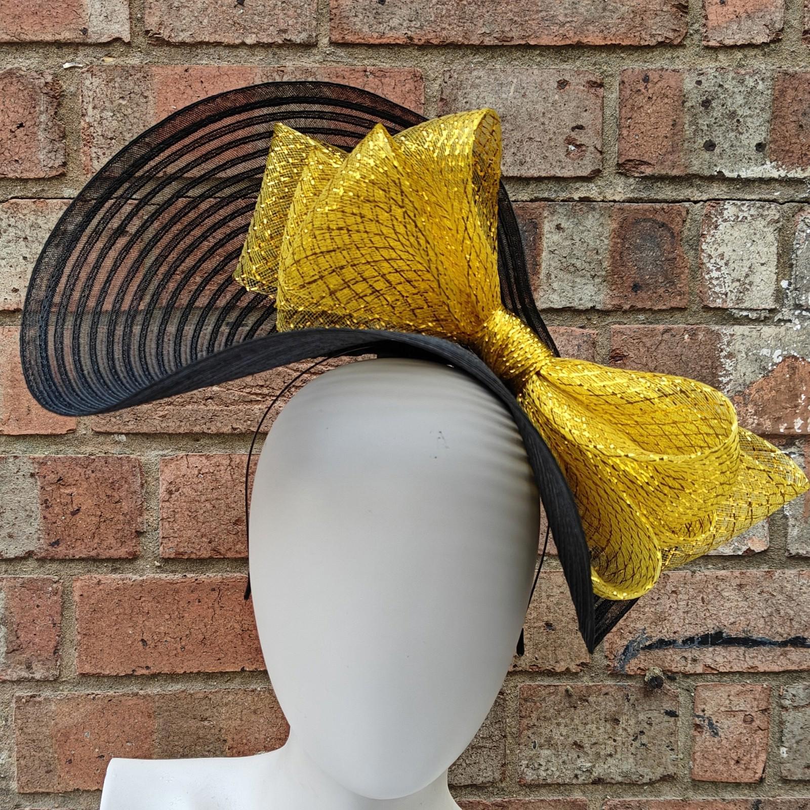 black gold bow crinoline fascinator millinery headband wedding hat party cosplay