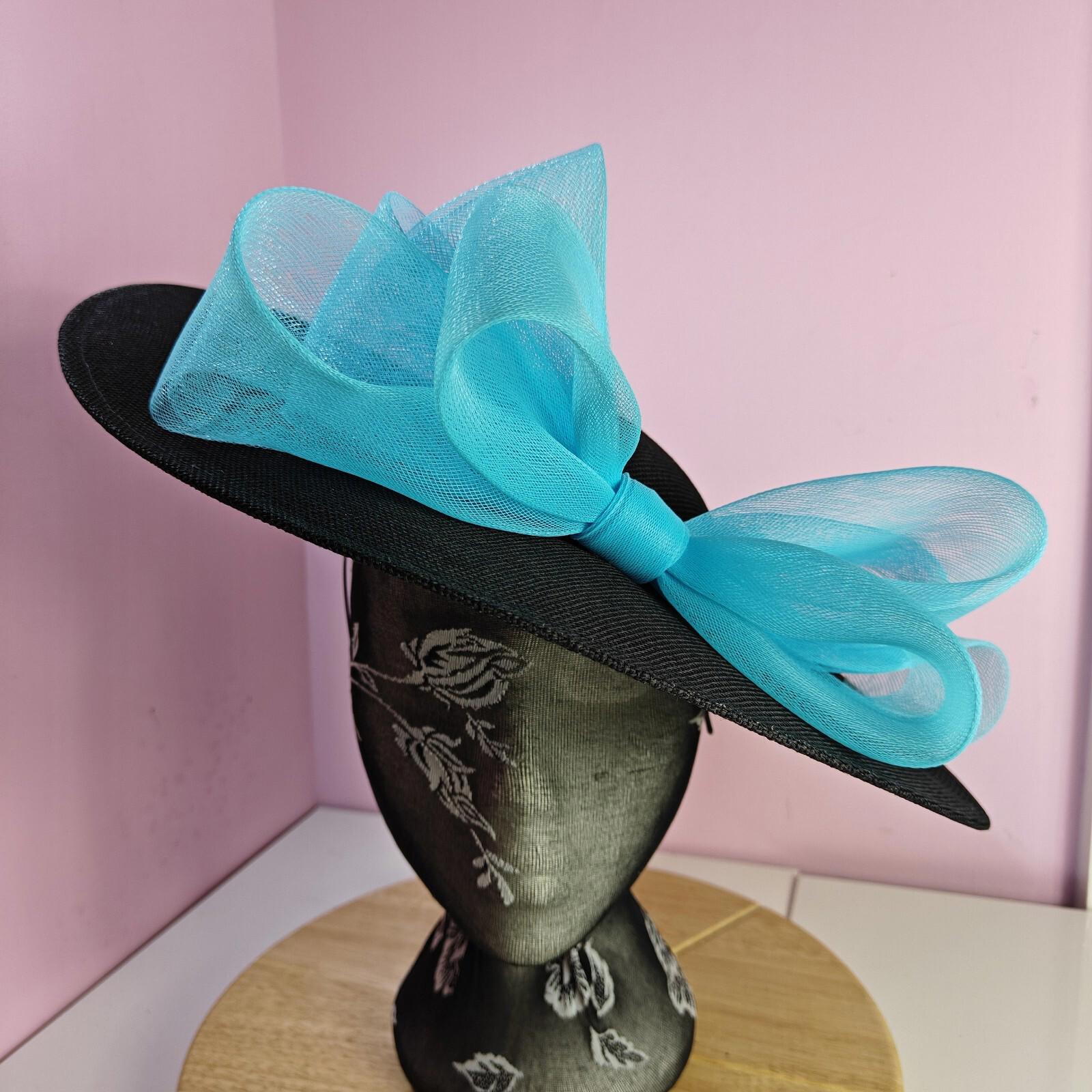 black turquoise large fascinator wedding hat Kentucky Derby Royal Ascot bow