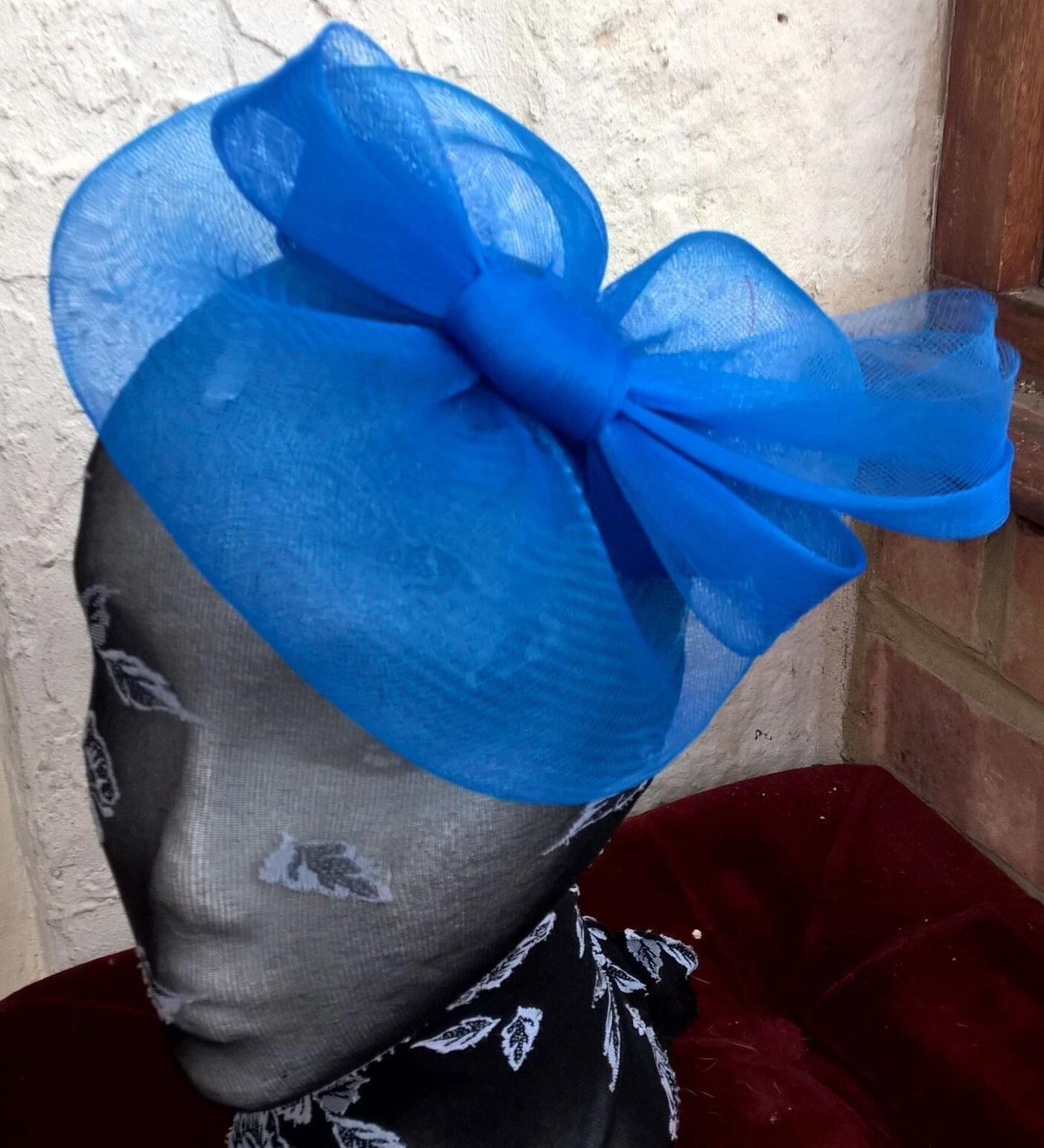 blue fascinator millinery burlesque wedding hat ascot race bridal British