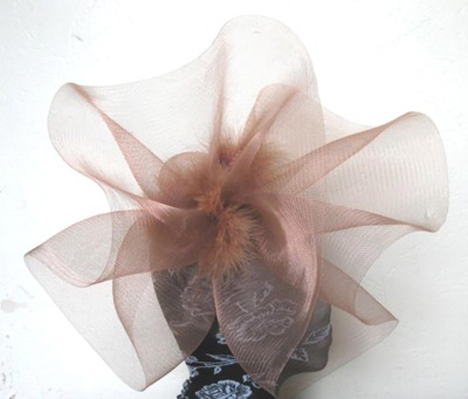 brown tan feather fascinator millinery burlesque headband wedding hat hair