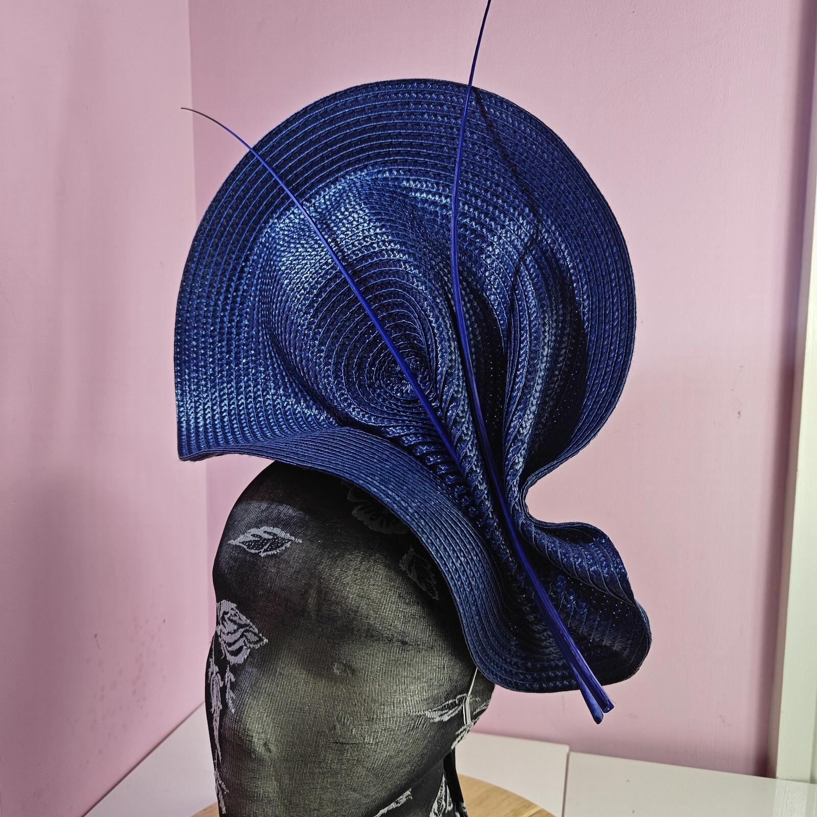 dark blue large straw quill fascinator wedding hat Kentucky Derby Royal Ascot
