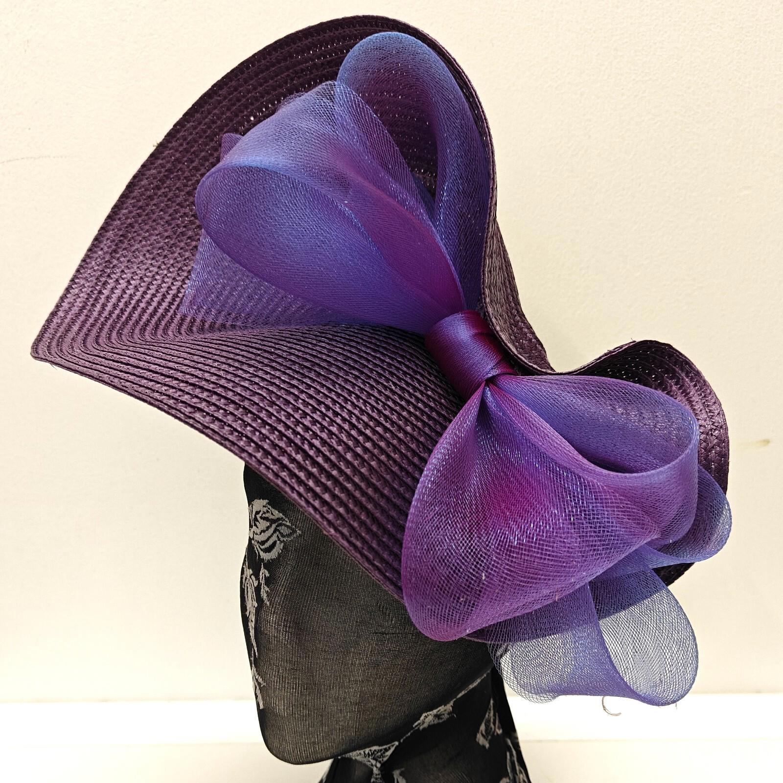 dark purple large straw fascinator millinery burlesque headband wedding hat bow