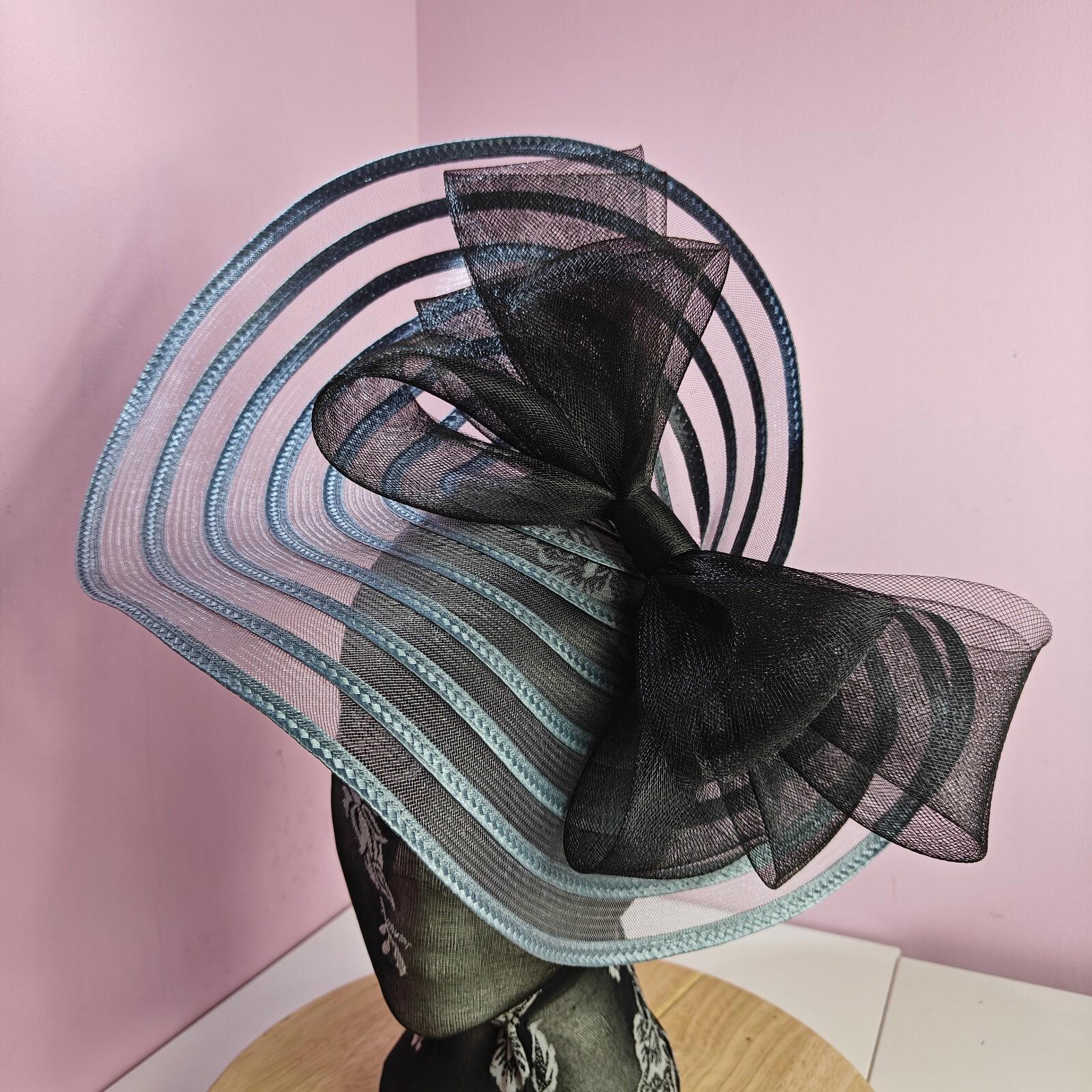 grey black bow fascinator millinery wedding hat Kentucky Derby Royal Ascot
