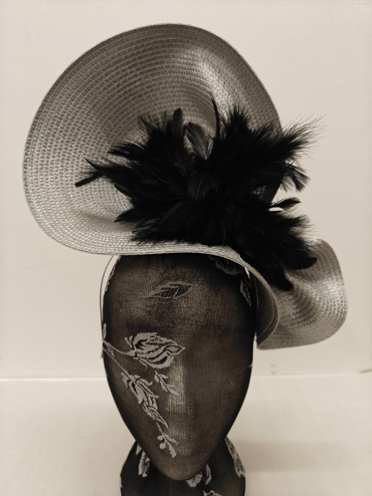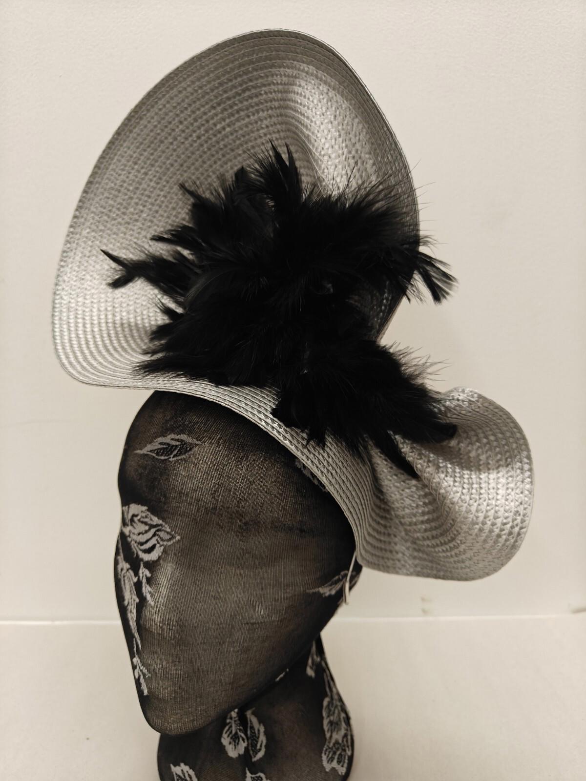 grey black flower large straw fascinator millinery burlesque headband wedding