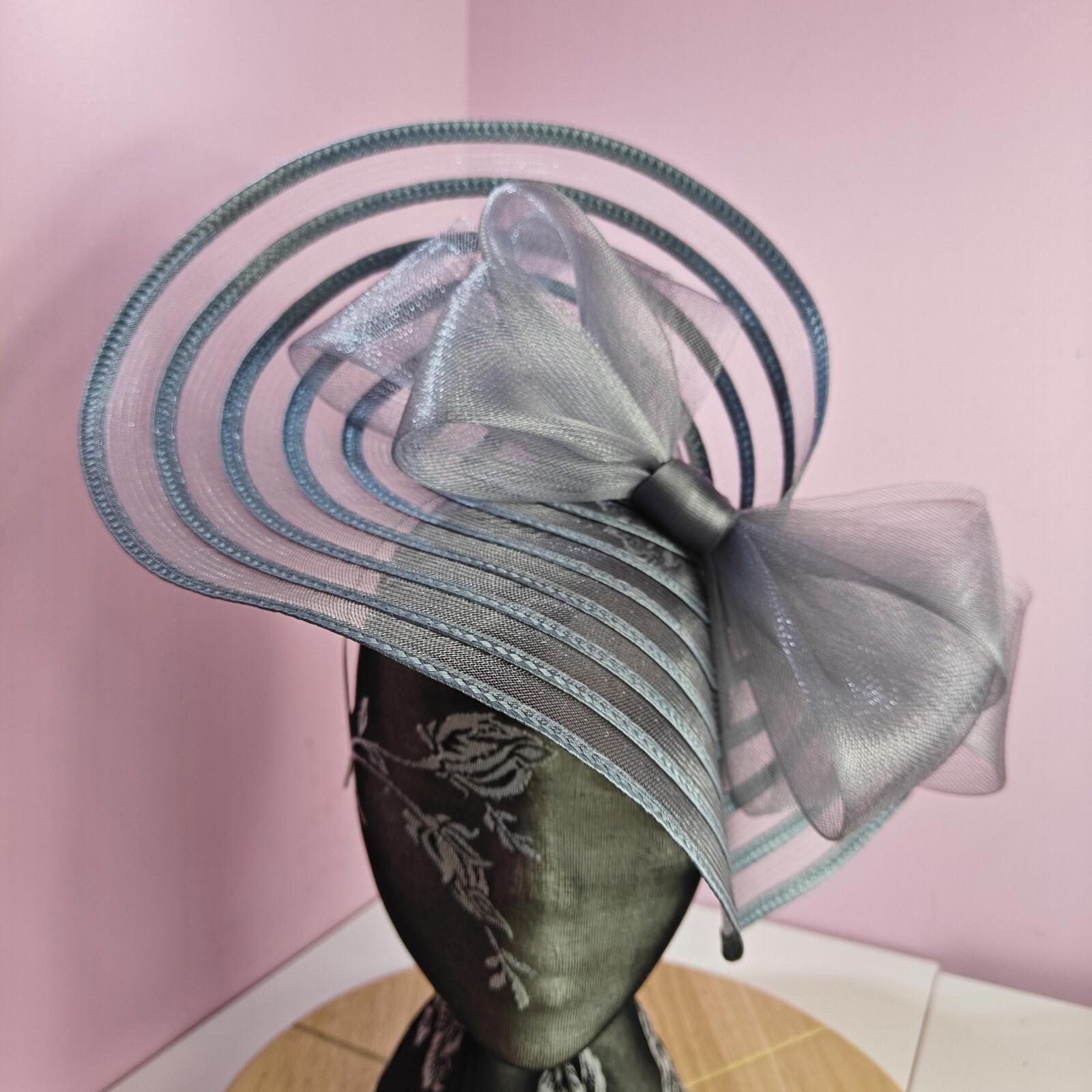 grey bow fascinator millinery wedding hat Kentucky Derby Royal Ascot