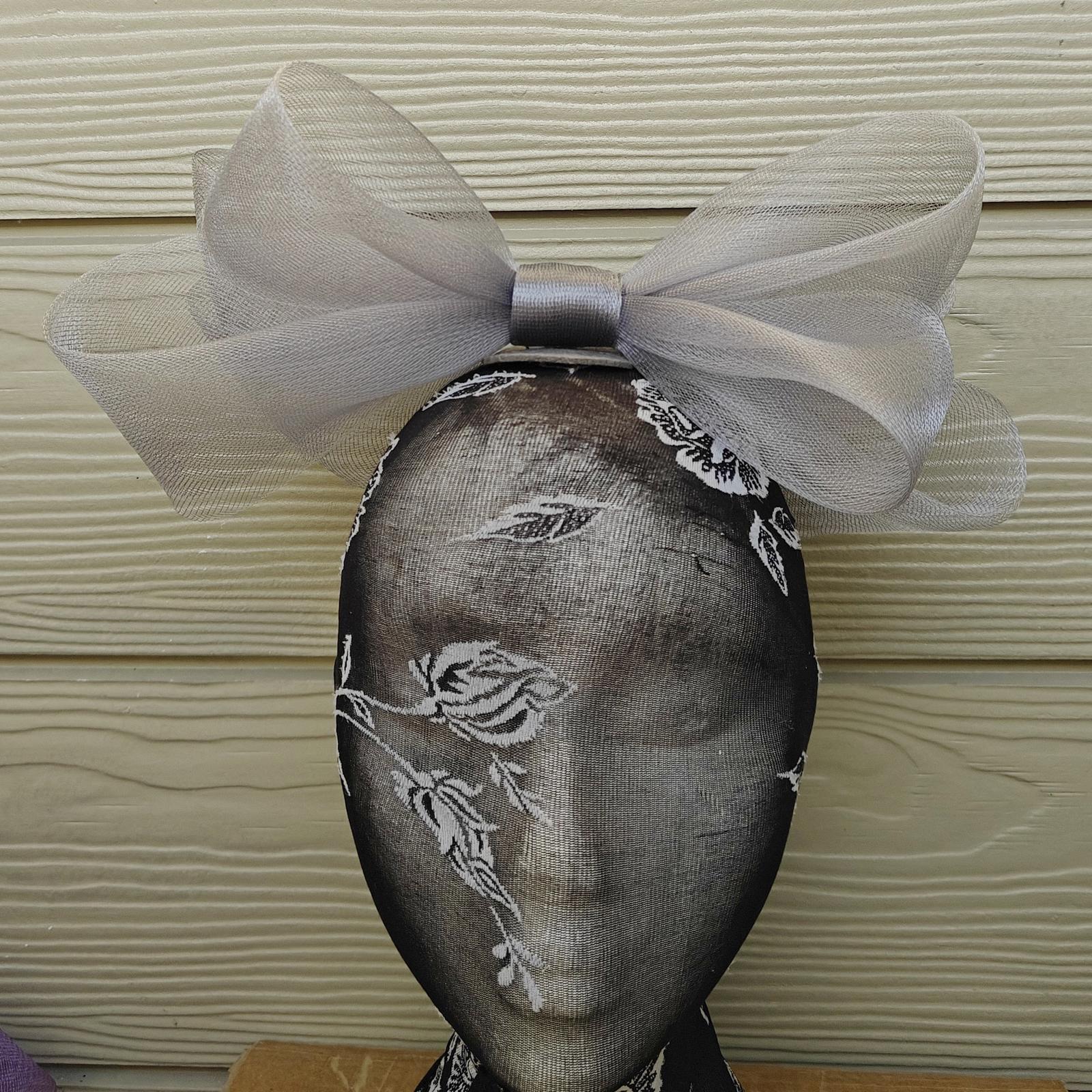 grey bow hair clip brooch fascinator millinery wedding hat race party