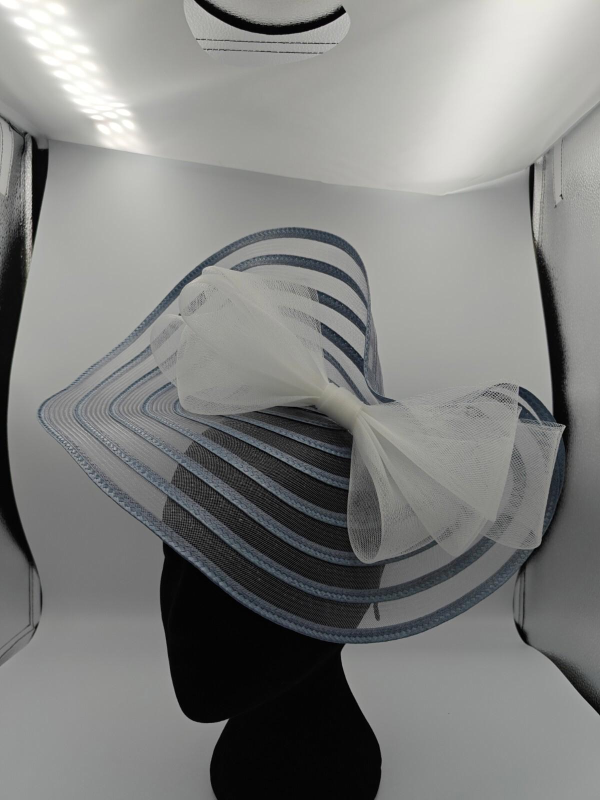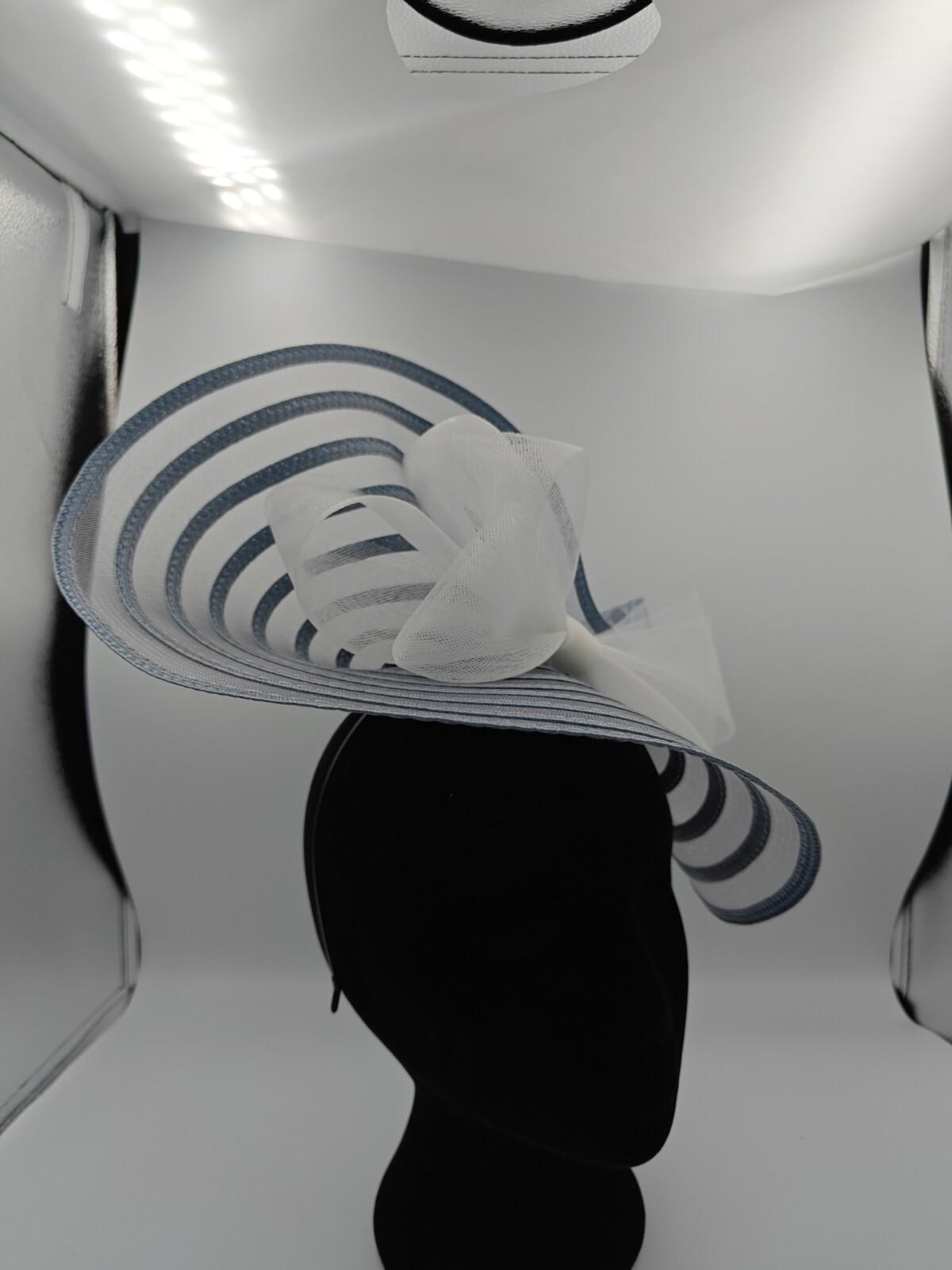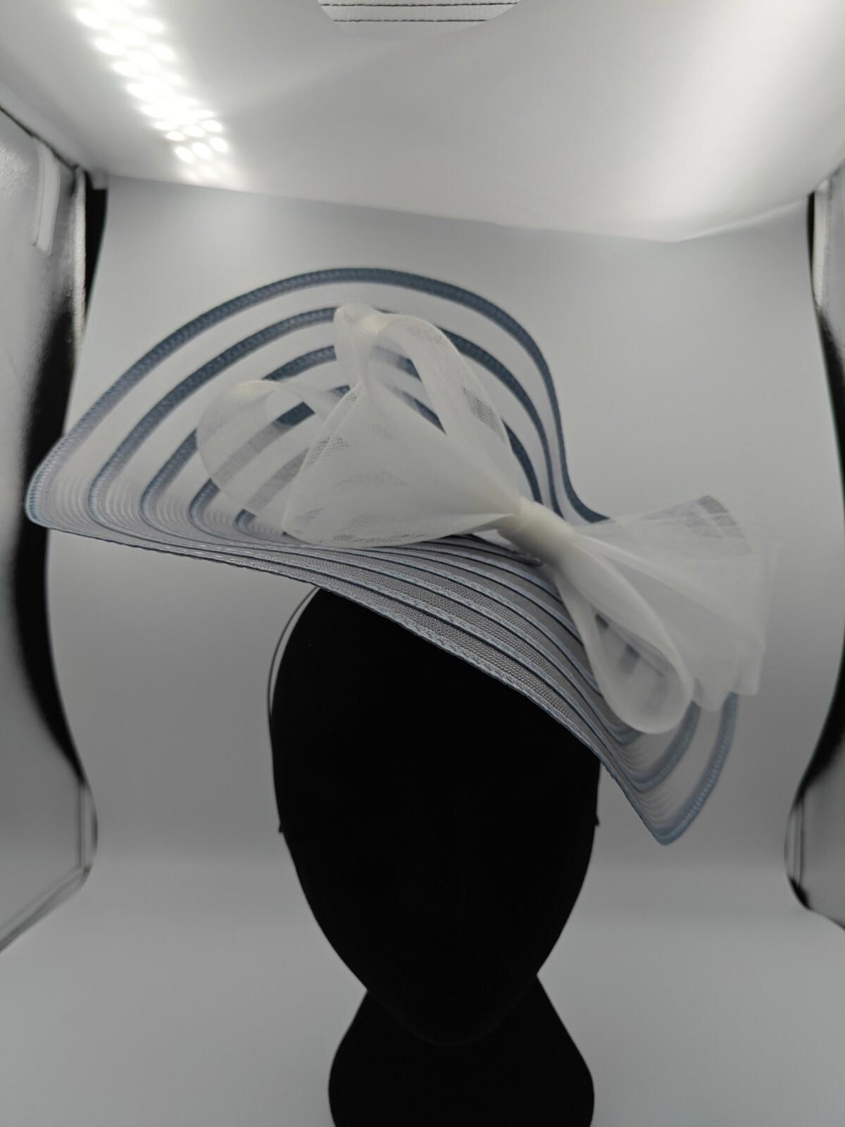 grey white bow straw fascinator millinery burlesque headband wedding hat