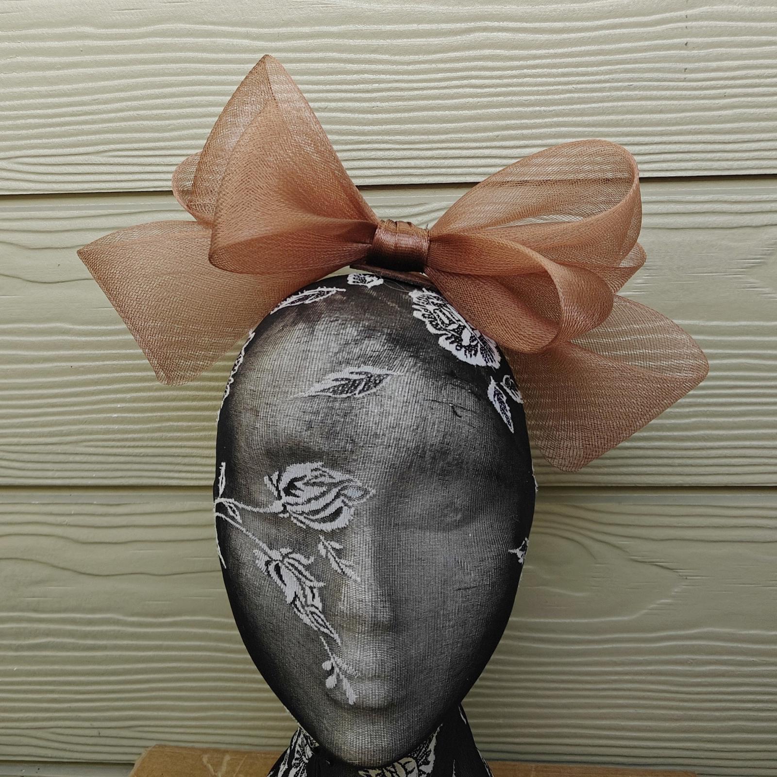 light brown bow hair clip brooch fascinator millinery wedding hat race party