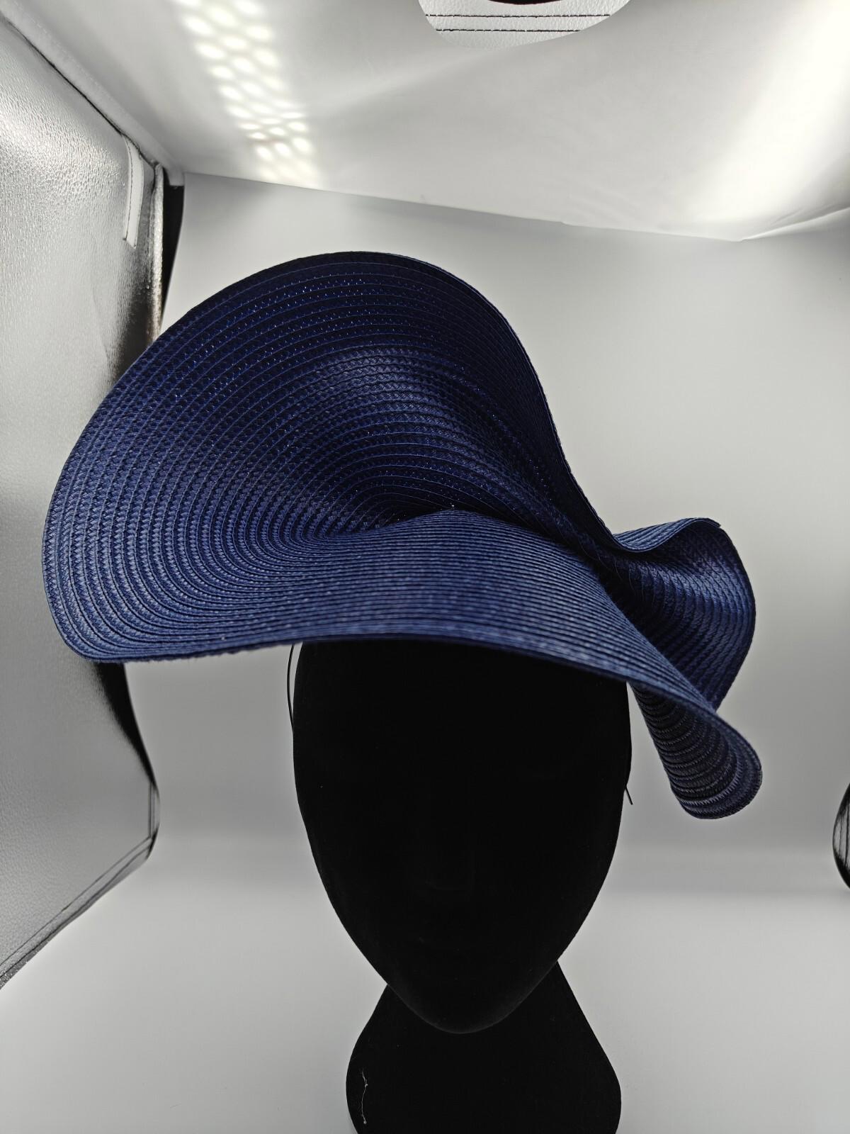 navy blue large straw fascinator millinery burlesque headband wedding hat