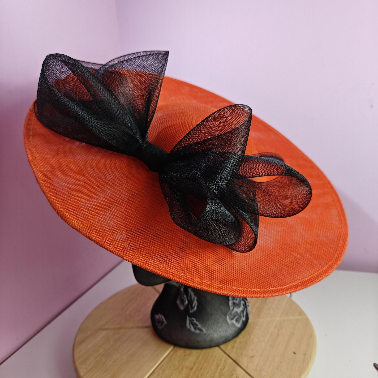 orange black large fascinator wedding hat Kentucky Derby Royal Ascot bow