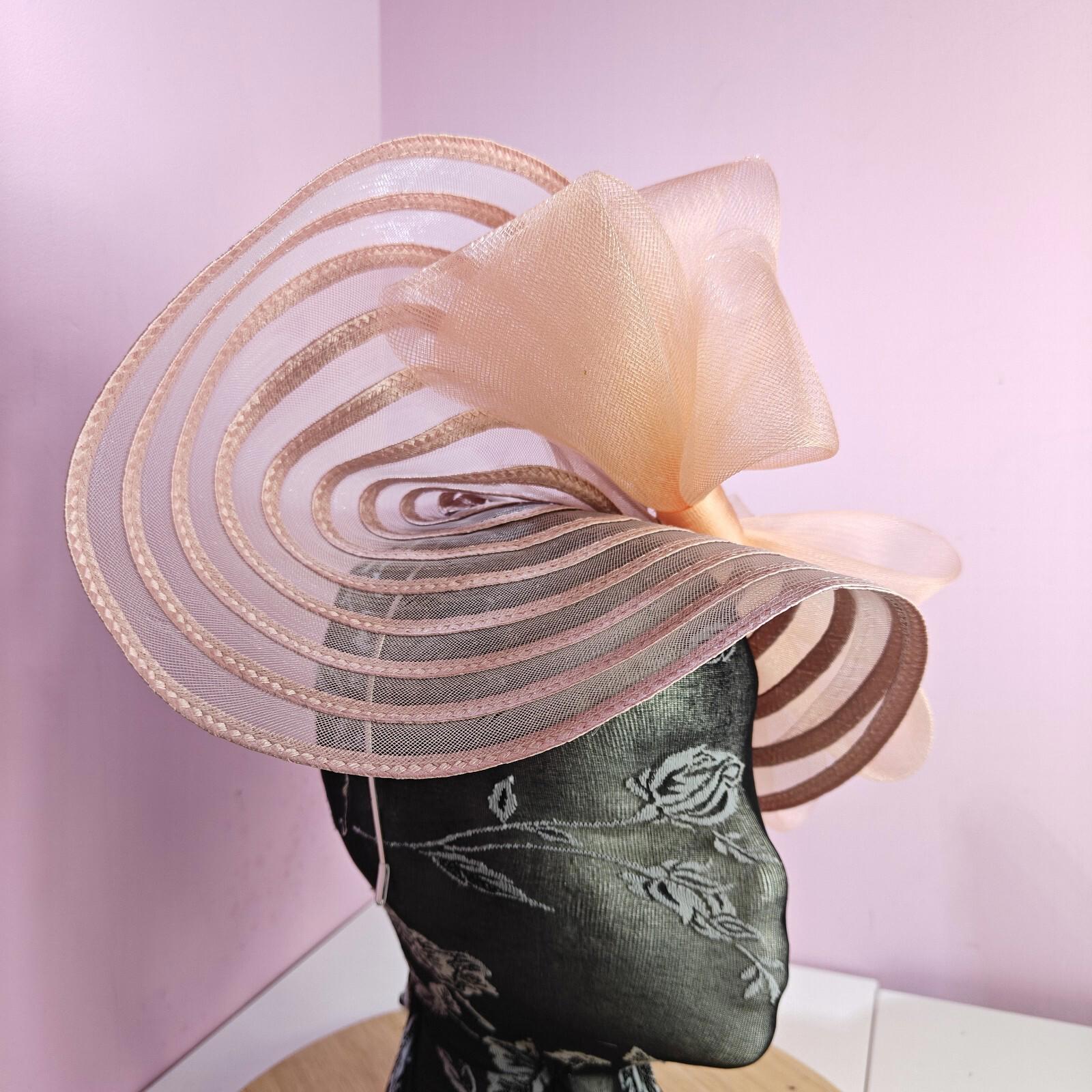 pink peach coral bow fascinator millinery wedding hat Kentucky Derby Royal Ascot