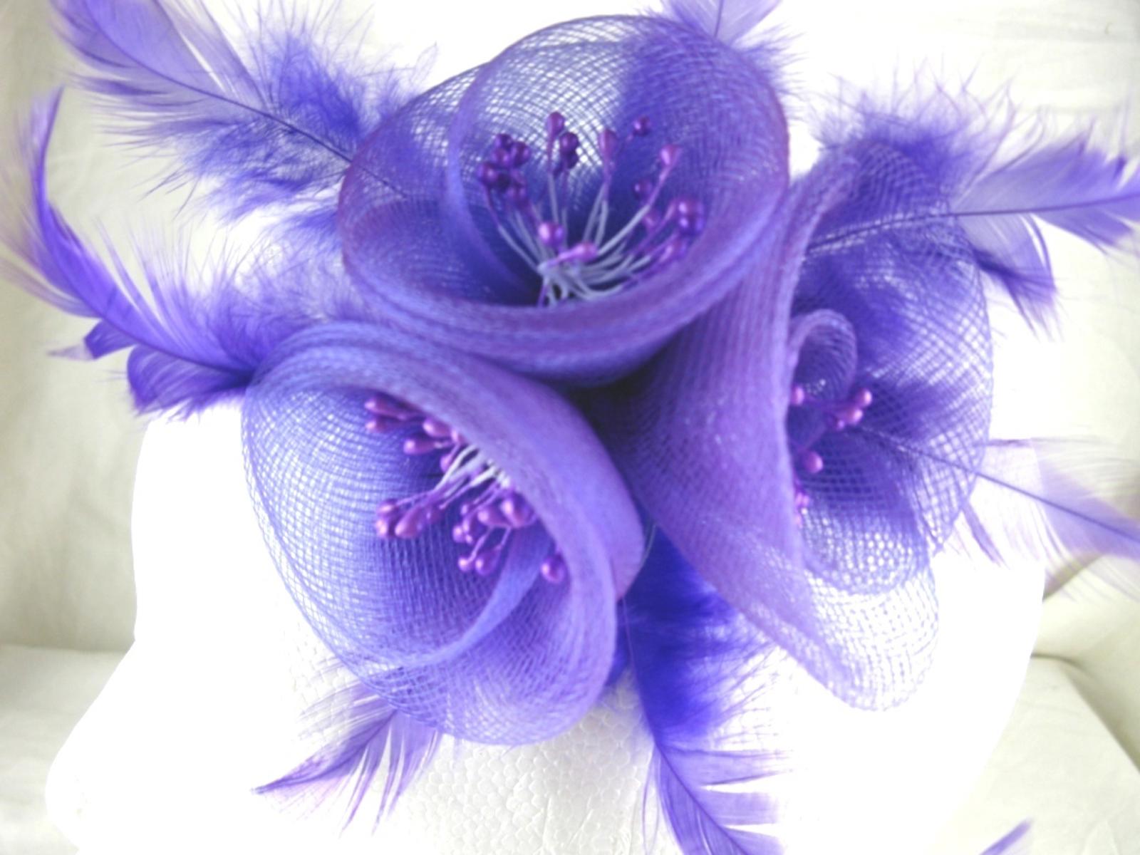 purple fascinator millinery feather brooch clip wedding bridal hair piece ascot