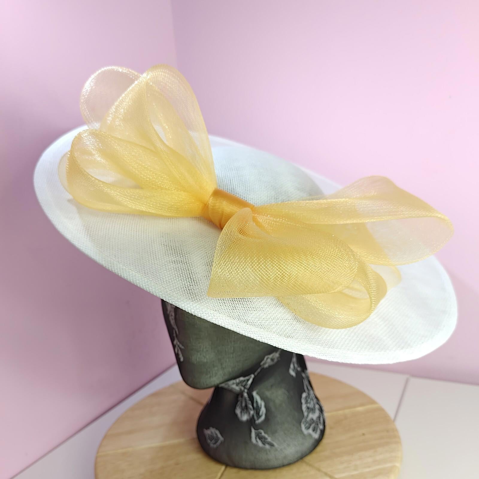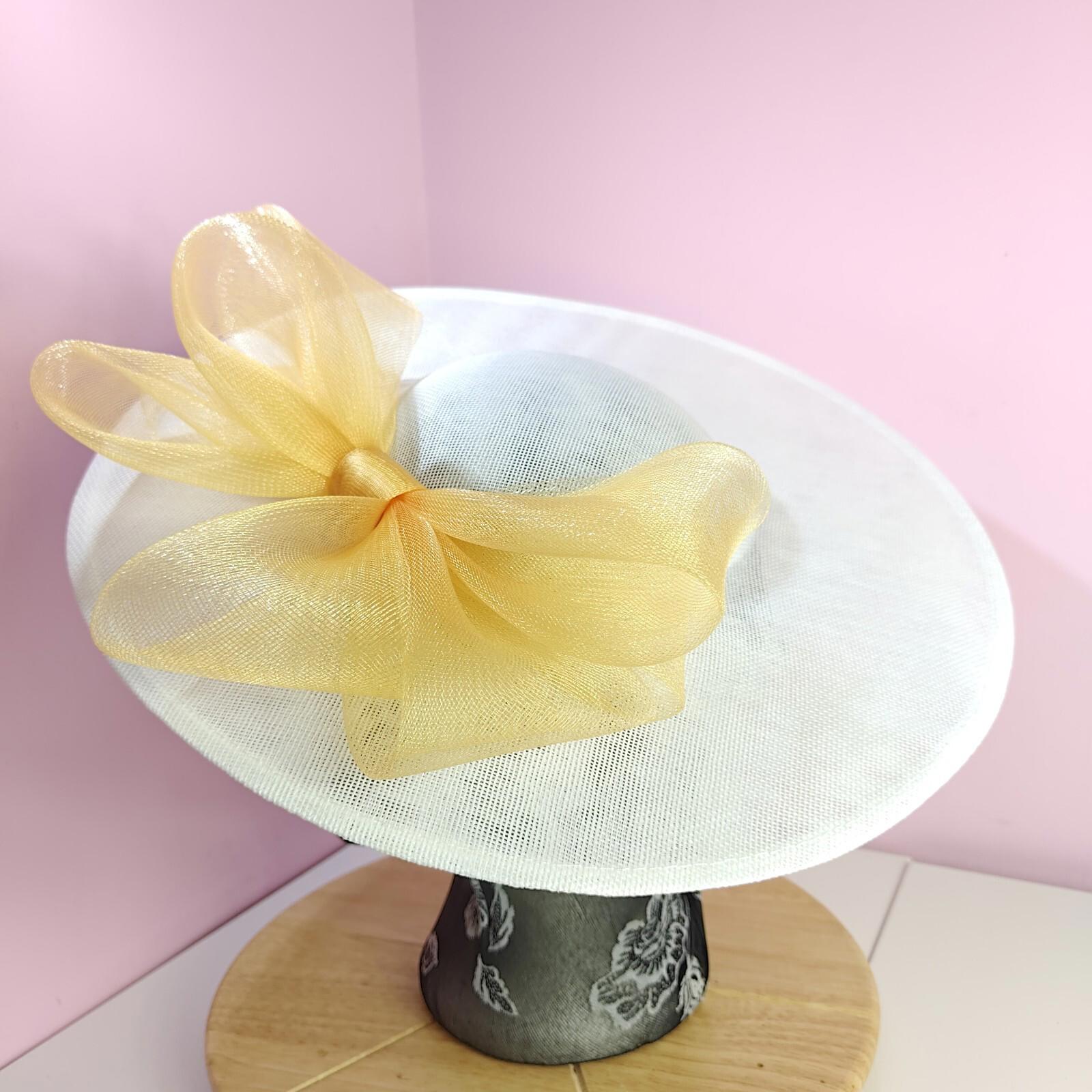 white gold large fascinator wedding hat Kentucky Derby Royal Ascot bow