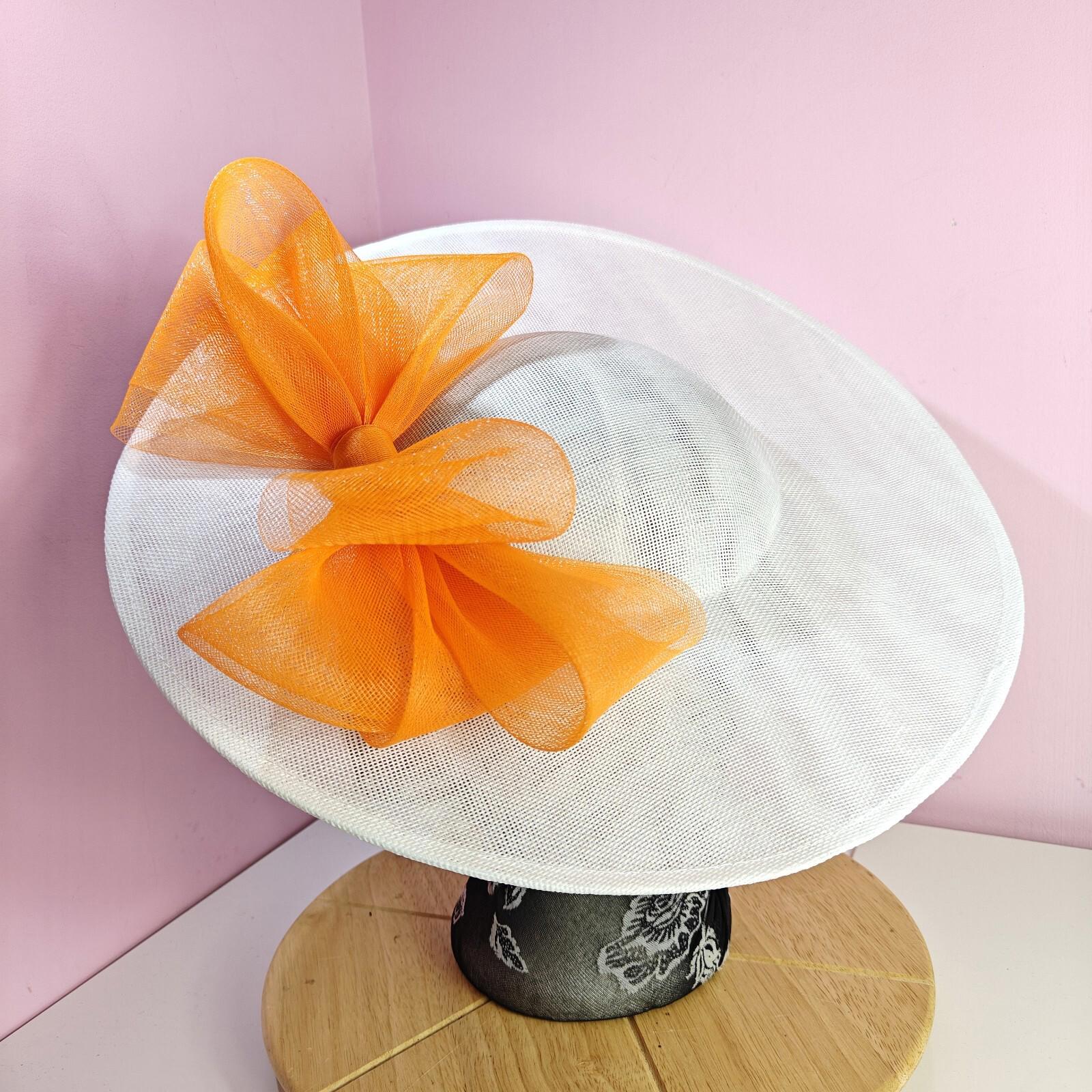 white orange large fascinator wedding hat Kentucky Derby Royal Ascot bow