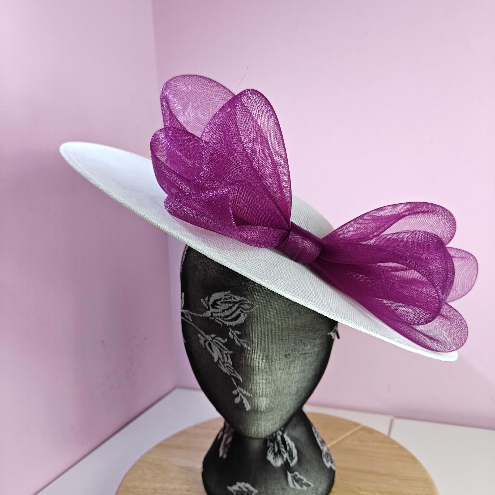 white plum large fascinator wedding hat Kentucky Derby Royal Ascot bow