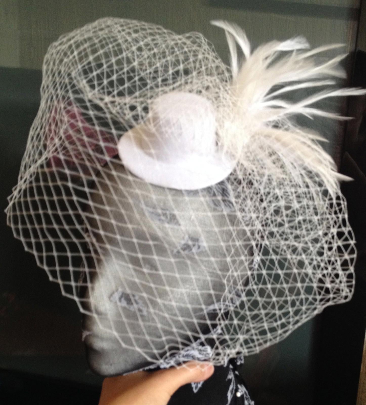 white veiling feather mini top hat fascinator millinery wedding party race ascot