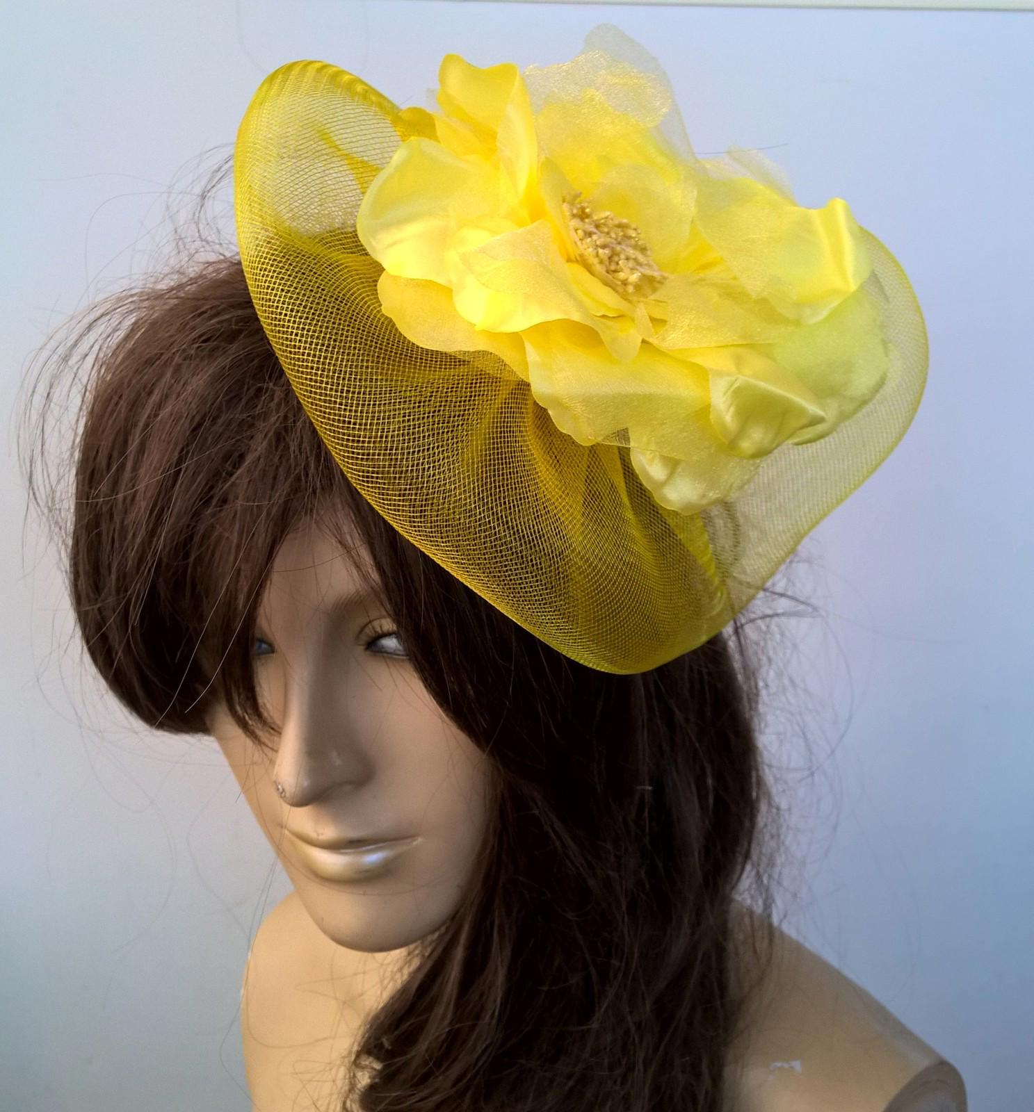 yellow satin flower fascinator millinery burlesque wedding hat bridal race x